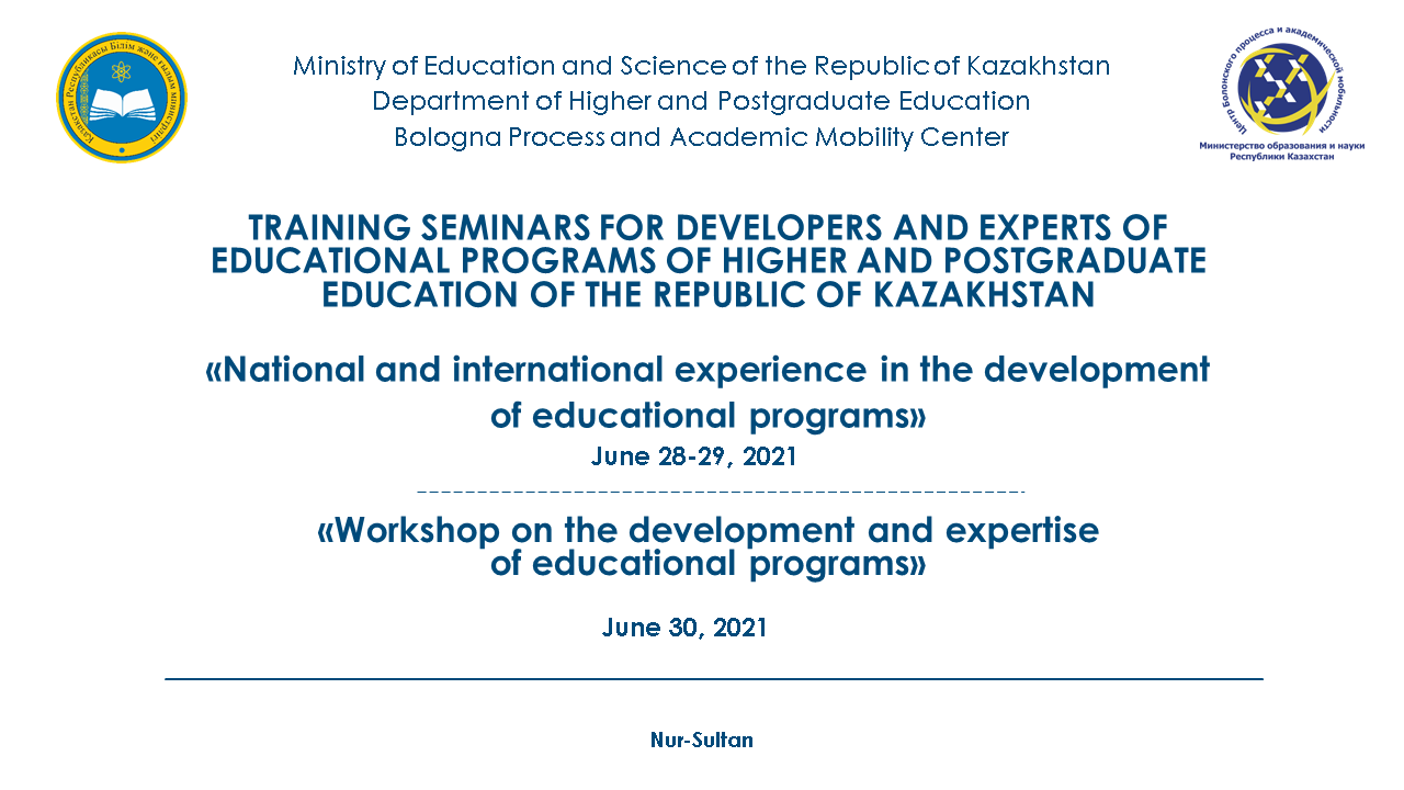 Bologna Process and Academic Mobility Center conducts educational training seminars for developers and experts of educational programs of the OHPE RK (hereinafter – seminar):