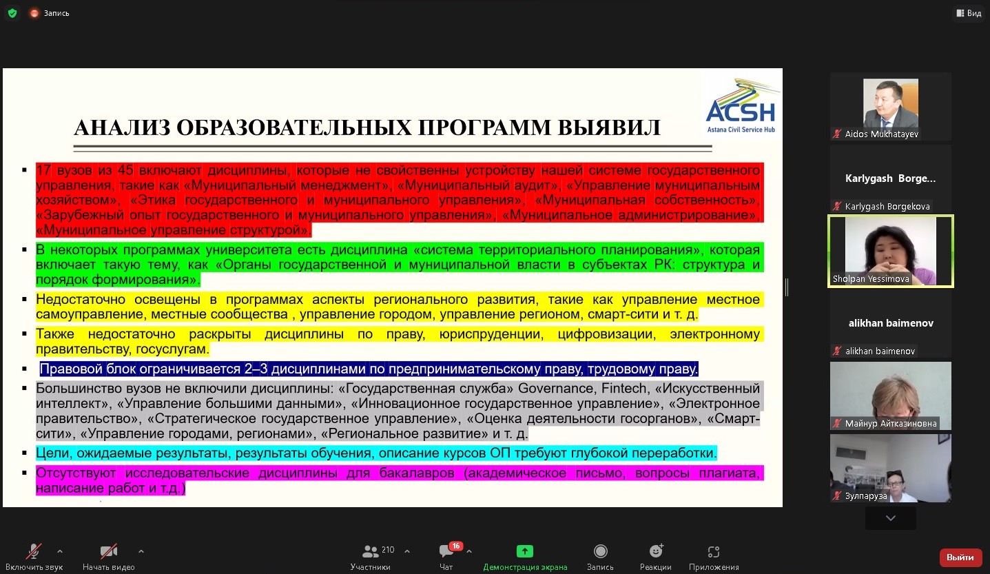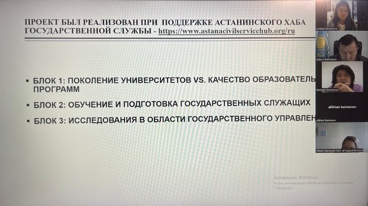 On October 10, 2022, Bologna Process and Academic Mobility Center and the Astana Civil Service Hub jointly held a seminar on the ZOOM platform to discuss the results of the research work on the topic “Education and training of government officers. Educational program "State and local government" in the universities of Kazakhstan". More than 200 participants took part in the seminar, including representatives of Azerbaijan and Uzbekistan.