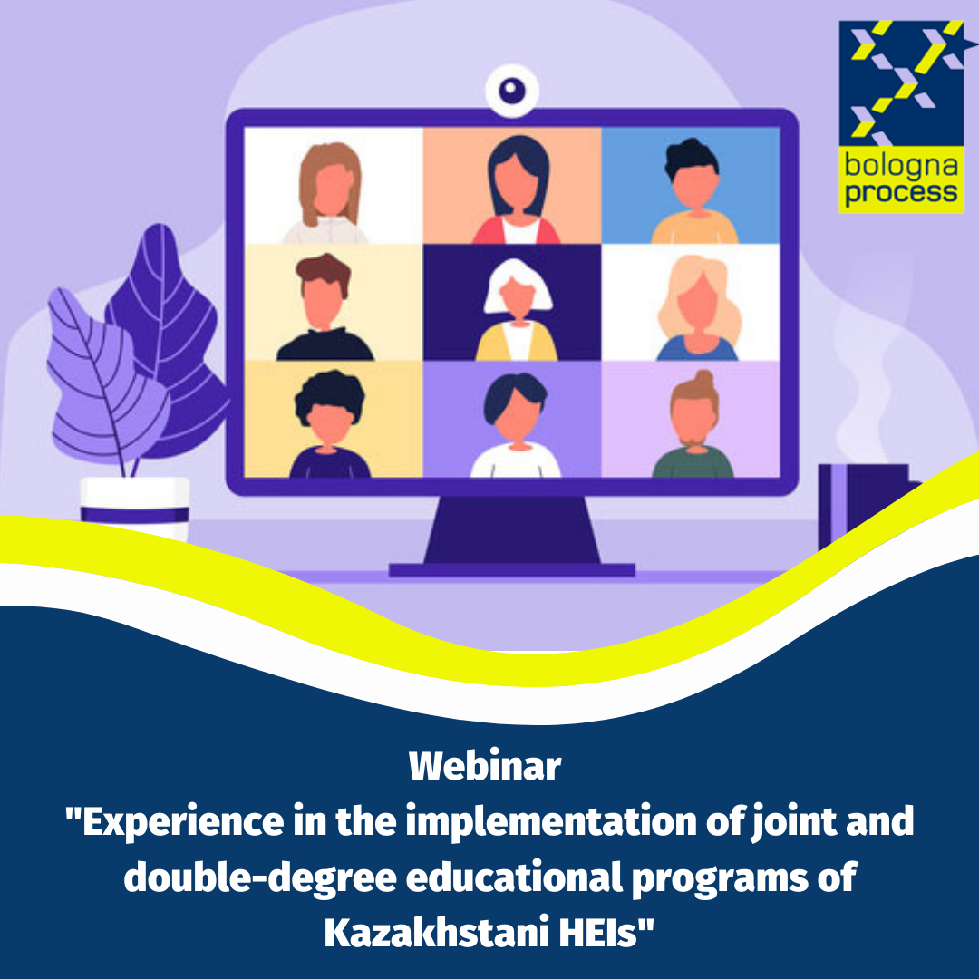 On May 12, 2021, Bologna Process and Academic Mobility Center of the Ministry of Education and Science of the Republic of Kazakhstan organized a webinar for universities "Experience in the implementation of joint and double-degree educational programs of Kazakhstani HEIs".
