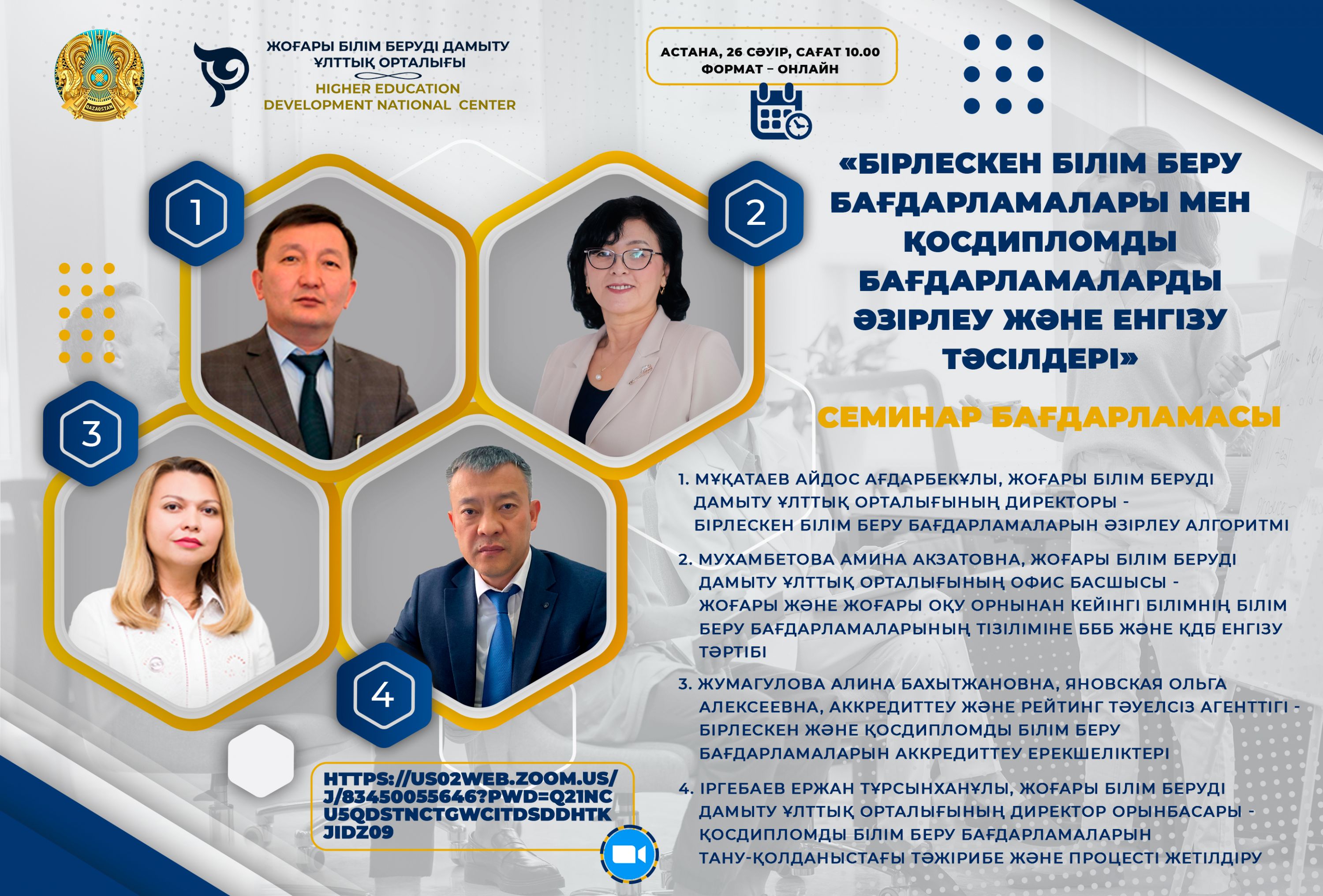 «Бірлескен білім беру бағдарламалары мен екі дипломдық бағдарламаларды әзірлеу және енгізу тәсілдері» СЕМИНАРЫ