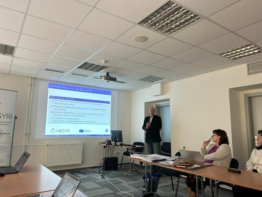 Сондай-ақ, Зилина университетінің FRI зертханасында топ мүшелері ACeSYRI порталының функционалдығын пайдалану бойынша екі күндік тренингтен өтті. Талқылау барысында порталды дамыту, университеттердің серіктестігін тереңдету, жобаның нәтижелері мен жетістіктерін тарату және тану, сапаны қамтамасыз ету және процестерді, процедураларды және жұмыс пакеттерін іске асырудағы ықтимал тәуекелдерді бақылау бойынша ұсыныстар жасалды.