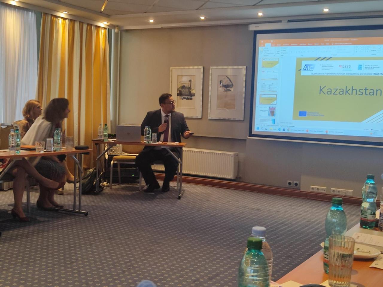 ЖБДҰО директорының міндетін атқарушы Алибек Серғазыұлы Мәдібеков пен директор кеңесшісі Амантай Әбілхаирович Нұрмағамбетов бастаған қазақстандық делегация Қазақстанның қысқа циклды бағдарламалар (қолданбалы бакалавриат) мен білім беру процесінде микро-біліктіліктерді қолдану тәжірибесін таныстырды. А.С. Мәдібеков өз сөзінде Презентация барысында қолданбалы бакалавриатты енгізудің пилоттық жобасының нәтижелері және микро-біліктіліктерді білім беру бағдарламаларына интеграциялау бойынша ұсыныстар ұсынылды. Қазақстанның халықаралық білім беру ынтымақтастығындағы белсенді қатысуы ерекше атап өтілді, бұл озық тәжірибелермен алмасуға және елдің жаһандық білім беру жүйесіне интеграциясын нығайтуға ықпал етеді.