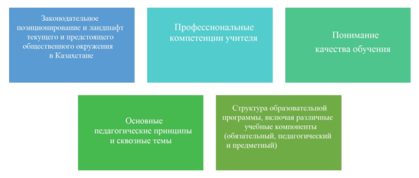Базовый куррикулум был создан на основе различных документов и результатов проекта "Усиление потенциала педагогического образования KZEMP/QCBS-03", включая всесторонний анализ текущей ситуации и потребностей в развитии педагогического образования в Республике Казахстан и улучшенную модель ПО.