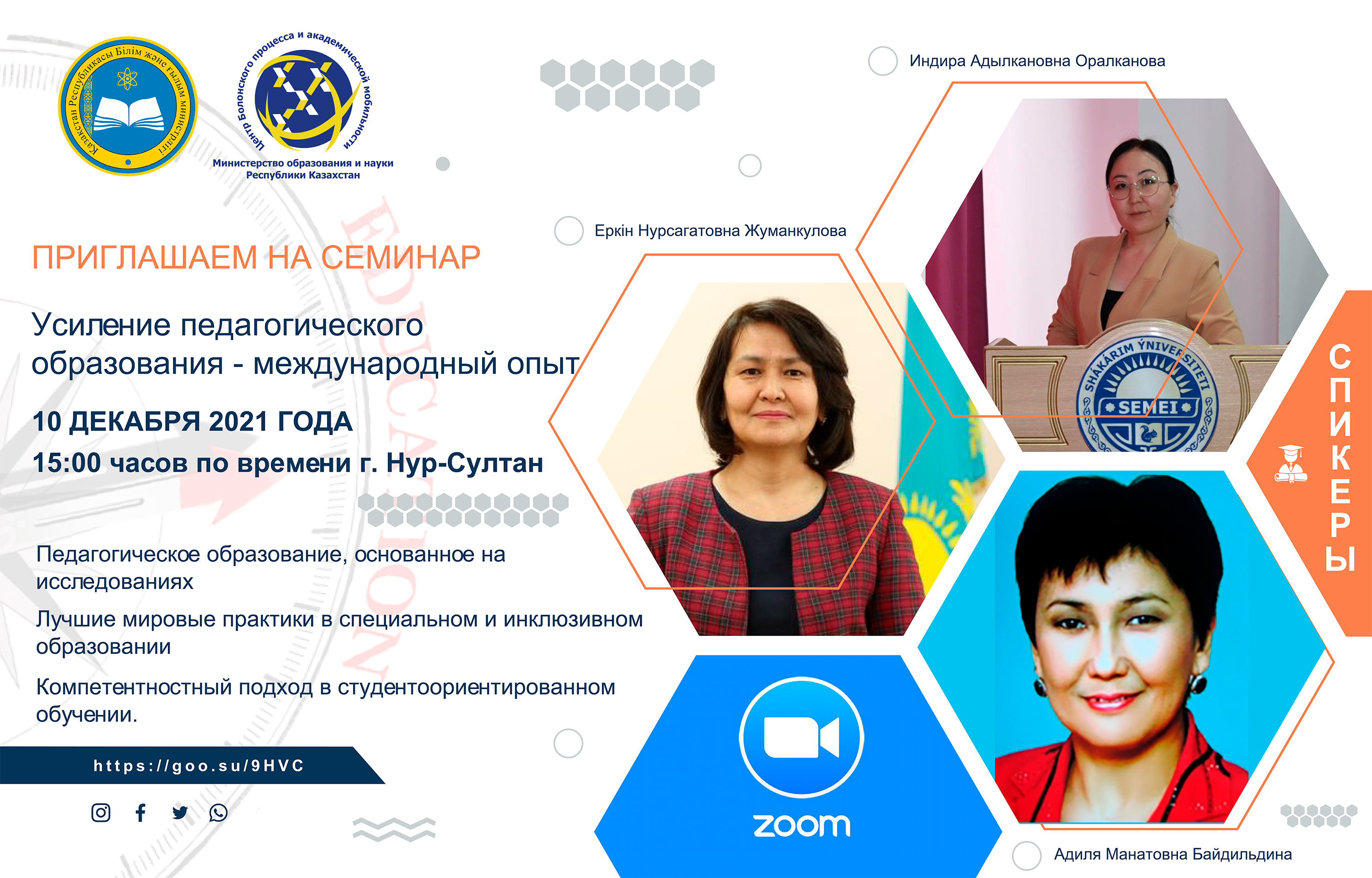 10 декабря 2021 года на площадке Центра Болонского процесса и академической мобильности МОН РК (далее – Центр) был проведен семинар «Усиление потенциала педагогического образования – международный опыт».