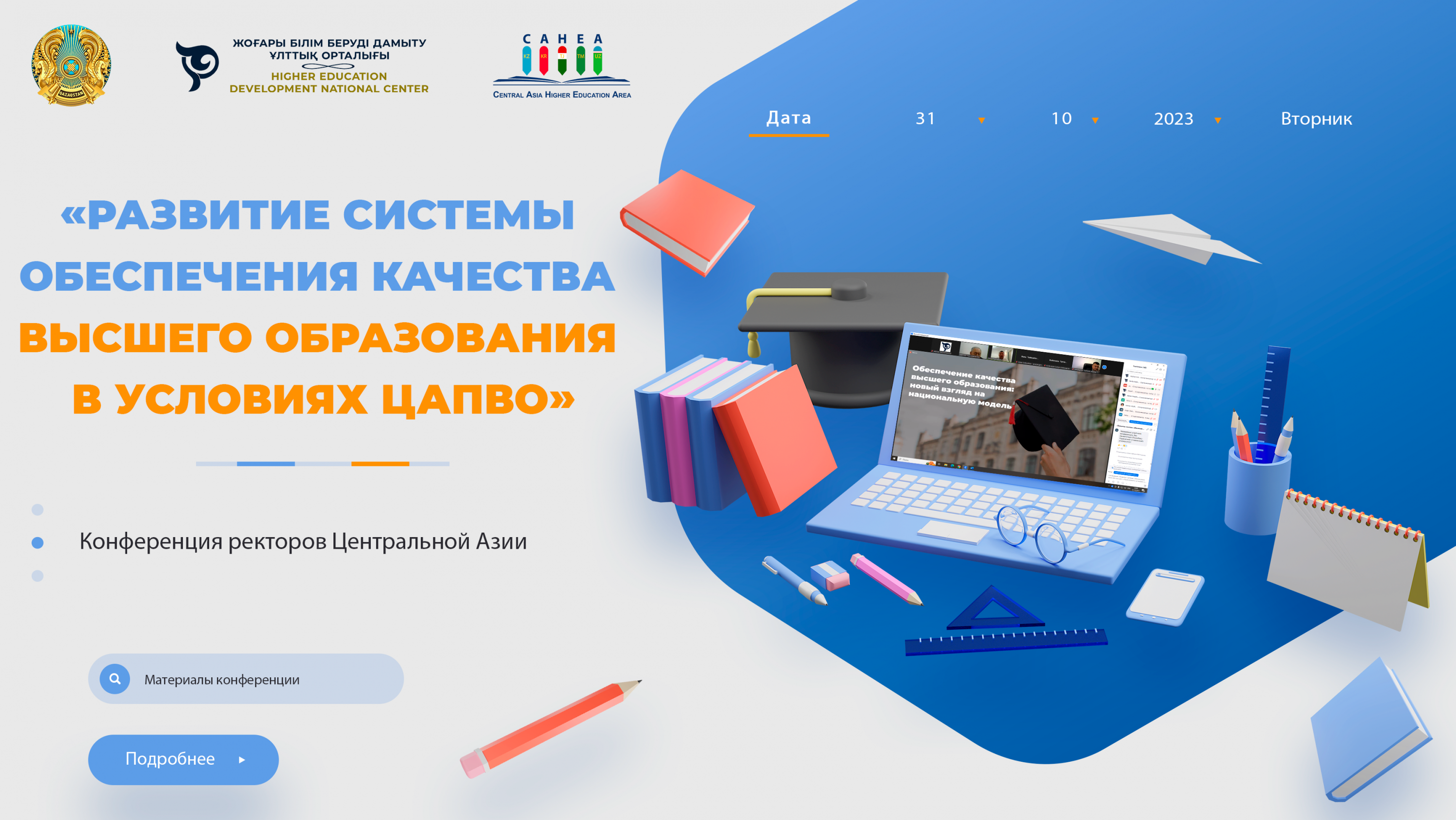 Сегодня в режиме онлайн состоялась Конференция ректоров Центральной Азии на тему «Развитие систем обеспечения качества высшего образования в условиях Центрально-Азиатского пространства высшего образования», организованная Национальным центром развития высшего образования.